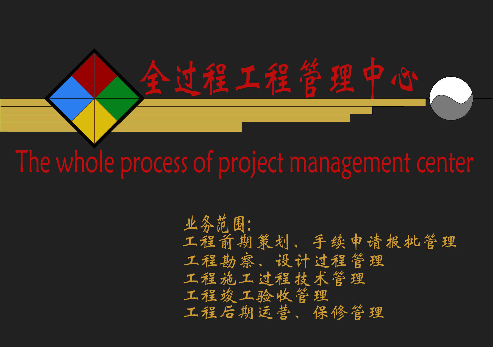 ●業(yè)務(wù)范圍:為甲方提供工程項(xiàng)目全過(guò)程咨詢服務(wù),包括:前期項(xiàng)目建議書、可行性可研報(bào)告的編制、項(xiàng)目實(shí)施總體策劃、報(bào)批報(bào)建管理、合約管理、地質(zhì)勘察管理、規(guī)劃和設(shè)計(jì)各個(gè)環(huán)節(jié)管理、工程監(jiān)理、施工過(guò)程的技術(shù)支持、招標(biāo)代理、造價(jià)控制、驗(yàn)收移交、后期運(yùn)營(yíng)和維護(hù)技術(shù)支持等。