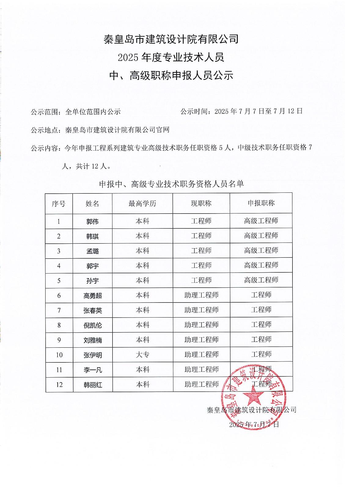 2025年職稱(chēng)公示